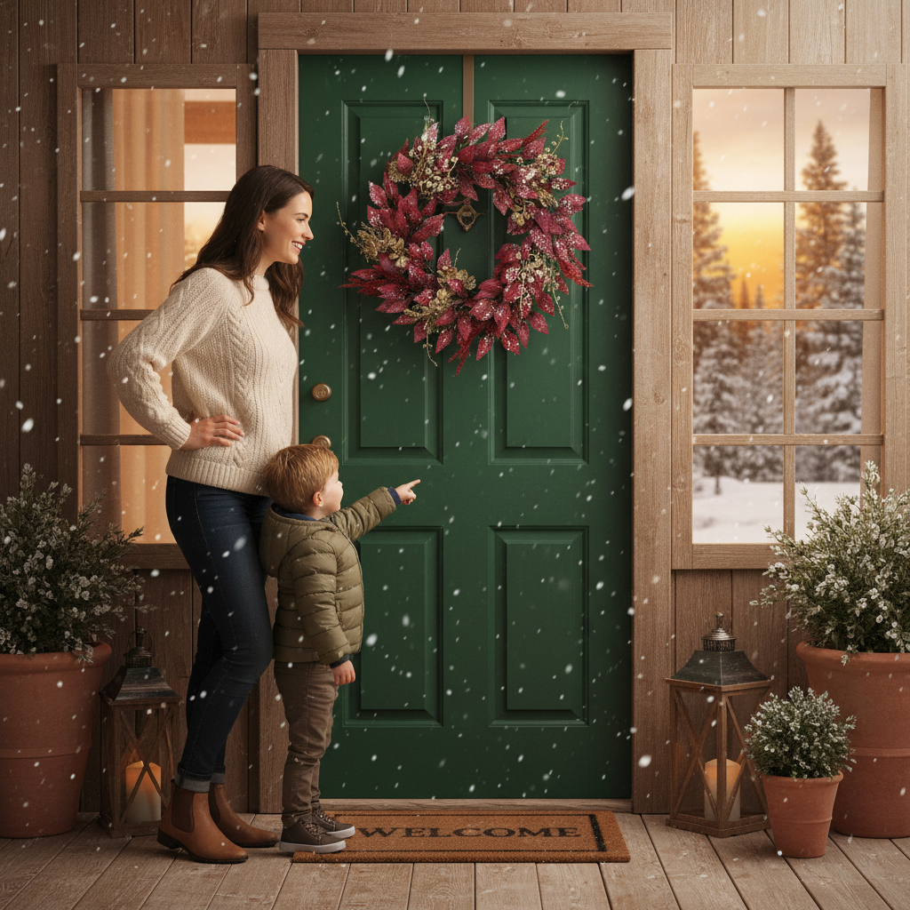 This wreath is perfect for autumn through to Christmas, enhancing your seasonal decor.