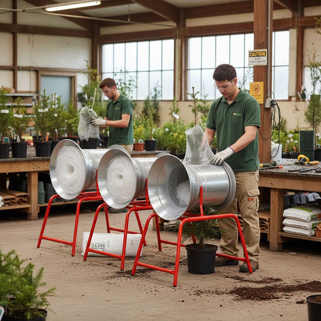 This Premium Biodegradable Tree Netting Funnel Starter Kit is designed for growers and retailers to securely wrap trees for safe transportation. It includes a galvanised netting funnel and a 400m sleeve of Oxo-Biodegradable netting, available in three sizes: 45cm, 55cm, and 65cm.