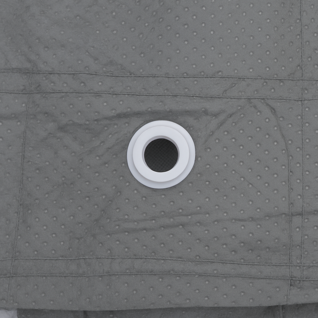 Elastic hems and reinforced grommets ensure a tight, secure fit