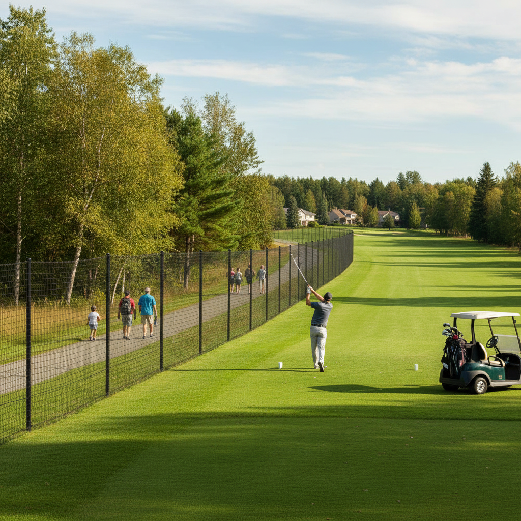 This fencing is primarily used to provide a barrier on golf courses, preventing balls from leaving the play area while blending into the landscape.
