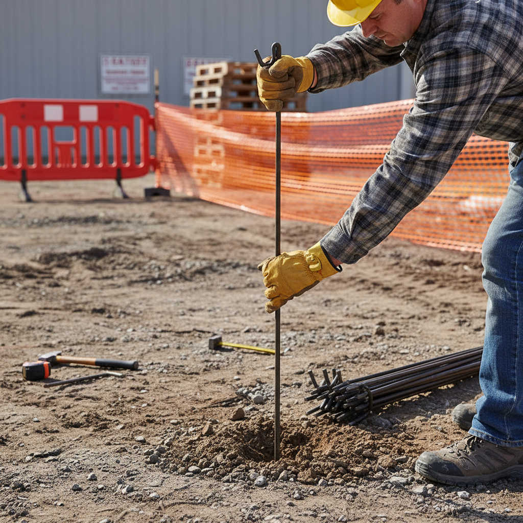 These strong steel plain bar fencing pins are designed for use around construction sites and roadways to cordon off hazardous areas and ensure worker safety. They are an essential tool for creating temporary barriers in various settings.