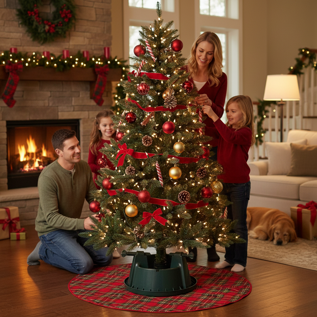 The stand can accommodate trees up to 1.8m (6 feet) tall. -