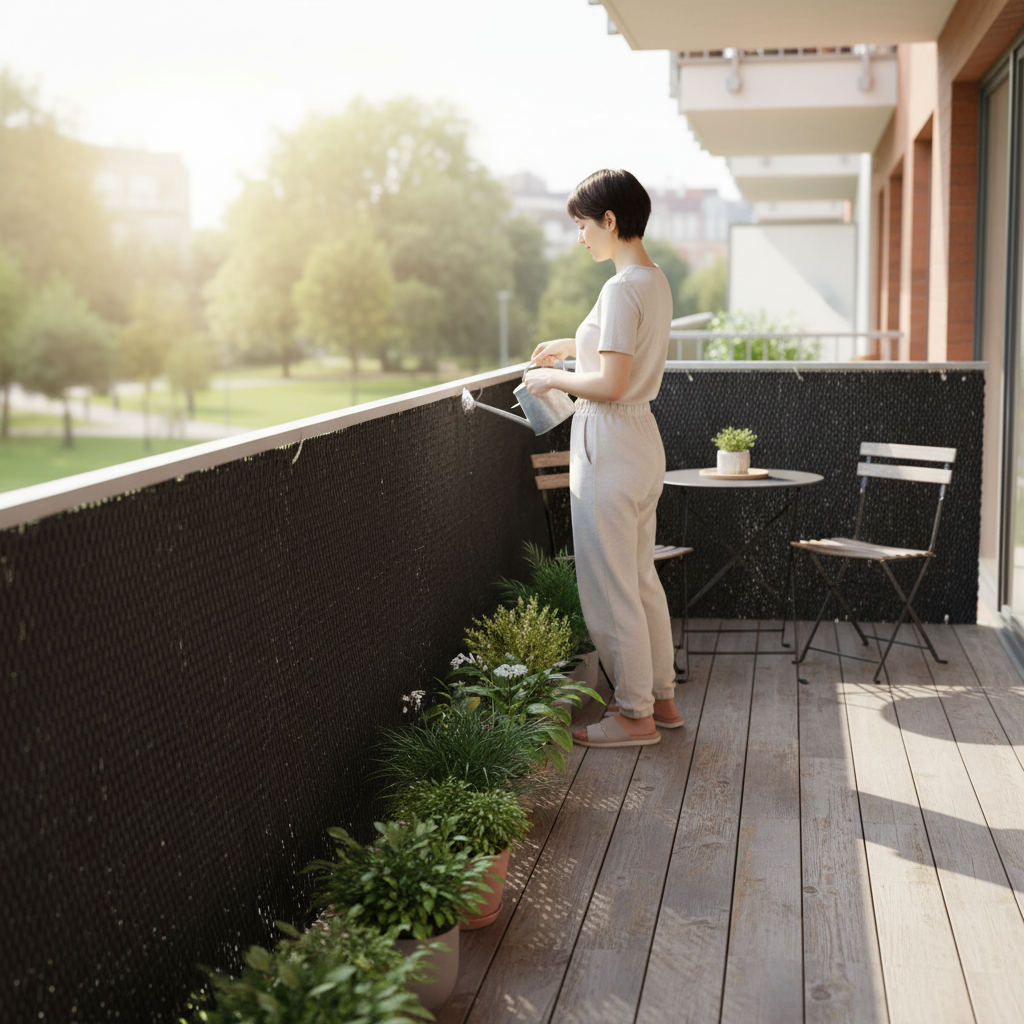 The Polyrattan Screening can be easily attached using cable ties, staples, or screws, making installation straightforward and quick.