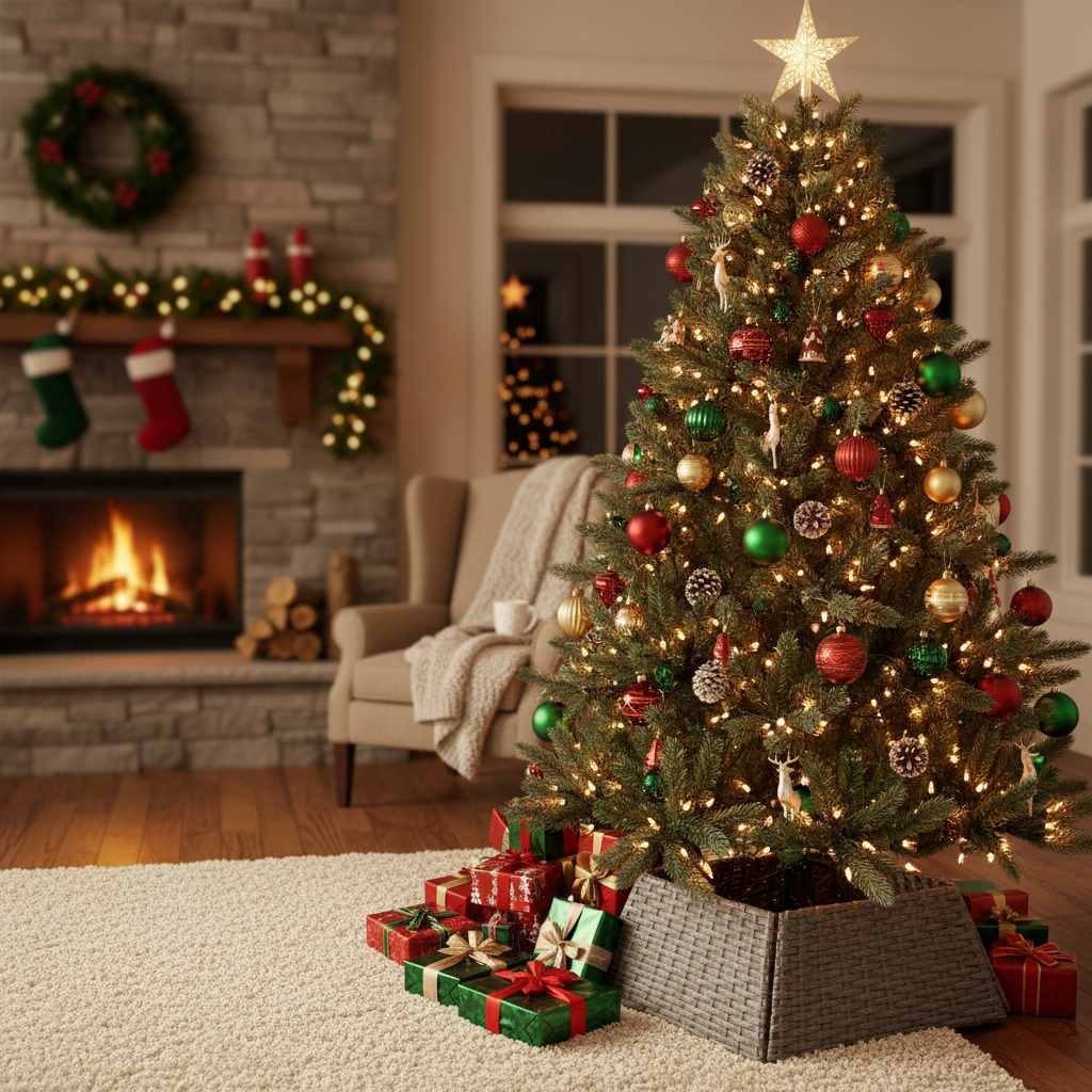 - How do I store the tree skirt when not in use? The tree skirt folds flat, making it easy to store in a compact space.