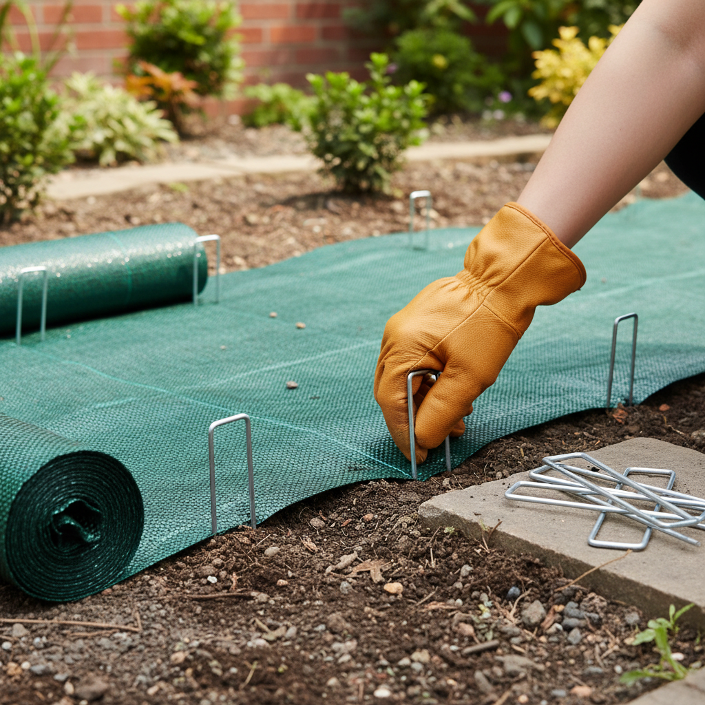- Use a hammer or mallet to drive the hooks into the ground at the corners and along the edges of your fabric or netting.