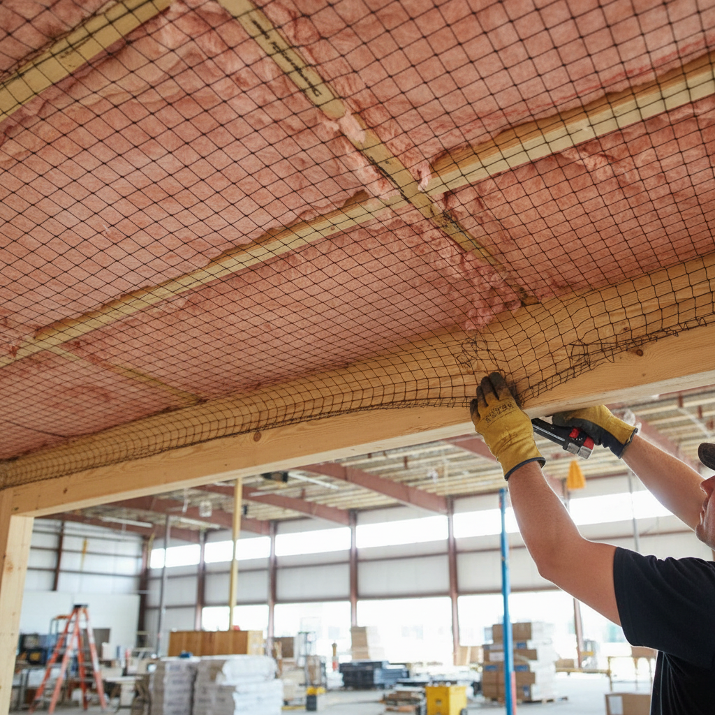 The Premium Roof Insulation Support Netting is a lightweight polypropylene net mesh designed to support and secure insulation materials within framework and joists. It is particularly effective when installed under joists in outdoor buildings, preventing large birds and unwanted animals from nesting. This netting can also be utilized under ventilated timber floors during construction or refurbishment projects.