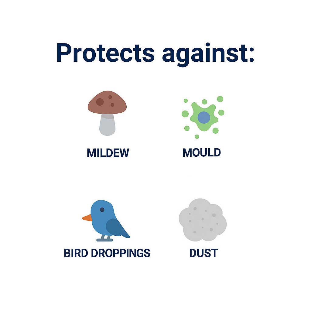 Protects against dust, dirt, mould, mildew, and bird droppings