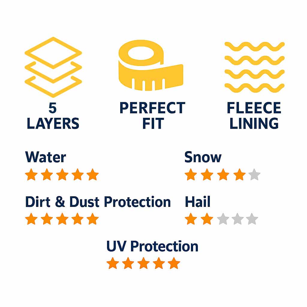 Protect your Silverado 1500 LTZ and camper shell with reliable, all-season coverage. The Standard Edition delivers strong 5-layer protection, UV resistance, and a soft fleece lining to keep your truck clean, secure, and well-preserved year-round.